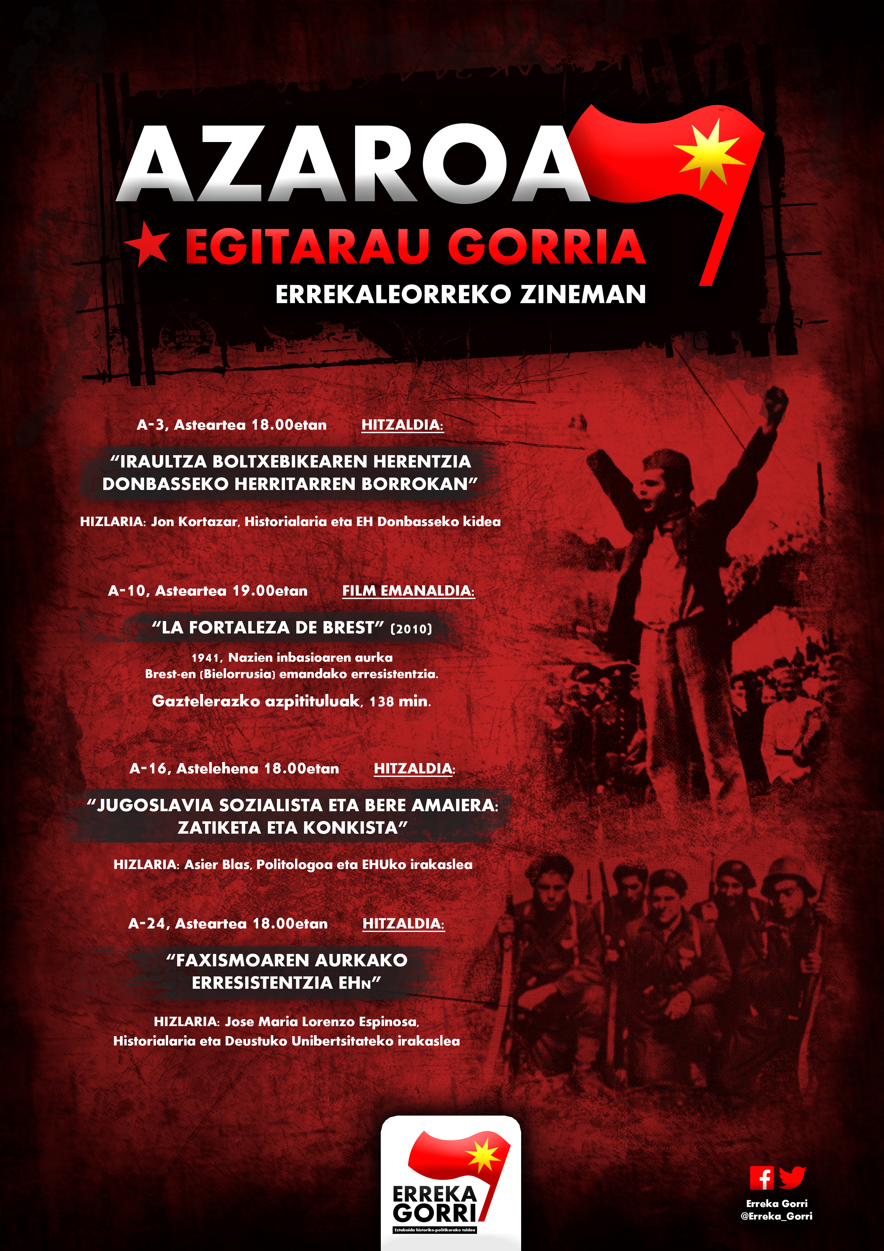 Honekin batera, ErrekaGorrik beste hainbat ekintza antolatu ditu Azarorako, hala nola: «Brest-eko Gotorlekua» film emanaldia (A-10), «Jugoslavia Sozialista eta bere amaiera: zatiketa eta konkista» Asier Blasekin (A-16) eta «Faxismoaren aurkako erresistentzia EHn» Josemari Lorenzo Espinosarekin (A-24).