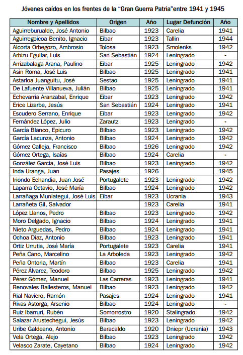 Listado de vascos caidos en la Gran Guerra Patria combatiendo con el sovietico Ejercito Rojo 2019-05-102019-05-10