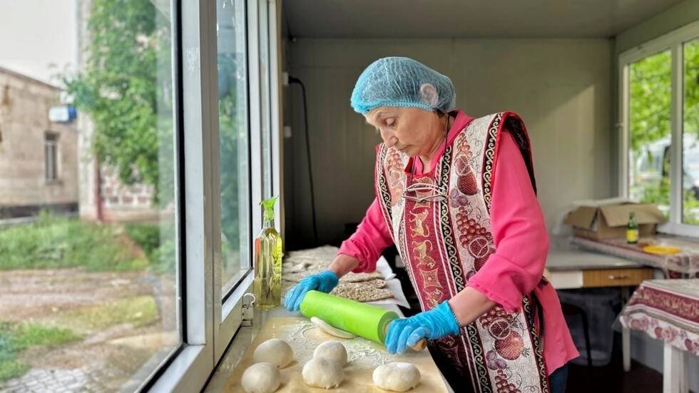Naira esparce la harina sobre la masa y la estira con fuerza. Cuenta que en Nagorno Karabaj ejercía la profesión de contadora. “Todos los días me imagino en nuestro patio, en la cocina. Me hace sufrir mucho que no tengo patria”, lamenta.