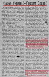 Otro artículo califica el día de la ocupación nazi de Kremenchuk («liberación de la opresión judeo-bolchevique«) como «un día grandioso e inolvidable para los ucranianos de la ciudad».