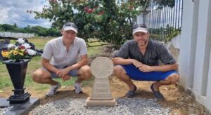 «Nos trajimos su historia», concluye Peio, a la que han aportado un capítulo propio. En una de las maletas que llevaron a Colombia viajó una estela «que tiene un lauburu y el eguzki, y que hizo Mari Ganuza en poco plazo». En la misma figuran los nombres de los tres guerrilleros masacrados y fue instalada en el exterior del cementerio para «dar un punto de memoria a estas personas».