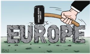 EB ez da gai izan Ukrainako gatazkari buruzko politika propioak garatzeko. Itsu-itsuan jarraitu zion Estatu Batuei, historiako zigorrik gogorrenak ezarri zituen, eta Europatik erabat isolatu zuen Europako estaturik handiena, Errusia. Suediak eta Finlandiak beren borondatez bultzatu zuten NATO, inolako arrazoi seriorik gabe. Ondoren, Nord Stream oliobideen suntsiketa etorri zen, inoiz egin den azpiegitura suntsiketarik handiena (ziurrenik, Estatu Batuek egin zuten, Biden presidenteak eta beste buruzagi batzuek hori egingo zutela esan zutelako, eta isiltasunagatik eta zer egin zuen azaltzen zuten txosten ofizialen faltagatik).