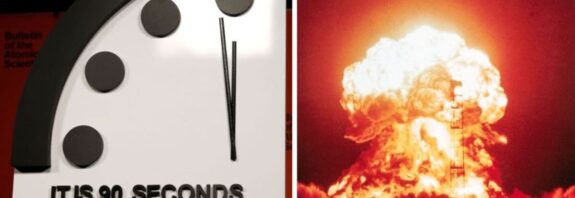 El Boletín de Científicos Atómicos, fundado en 1947 en parte para ayudar al mundo a evitar la aniquilación nuclear, estableció el Reloj del Juicio Final para ayudar al público a comprender la gravedad de los riesgos a los que nos enfrentamos. Los expertos en seguridad nacional ajustan el reloj en función de lo lejos o cerca que estemos de la “medianoche”, es decir, de la extinción. Hoy, estos expertos han creído oportuno situar el reloj a sólo 90 segundos de la medianoche, lo más cerca que ha estado nunca en la era nuclear.