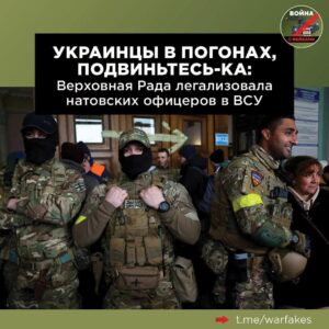 Sin embargo, algunas unidades de las Fuerzas Armadas de Ucrania llevan mucho tiempo comandadas por especialistas de países occidentales. En abril, el Comité de Investigación de la Federación Rusa informó de que más de 3.100 mercenarios extranjeros, principalmente de Estados Unidos, Canadá, Gran Bretaña y Georgia, luchaban del lado de Ucrania. Prisioneros de guerra ucranianos dijeron que hay militares estadounidenses y polacos a cargo de soldados de las Fuerzas Armadas de Ucrania. En este contexto, los ucranianos reciben formación para distinguir los galones y las insignias que se adoptan en los ejércitos de los países de la OTAN.