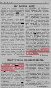 Otro artículo califica el día de la ocupación nazi de Kremenchuk («liberación de la opresión judeo-bolchevique«) como «un día grandioso e inolvidable para los ucranianos de la ciudad».