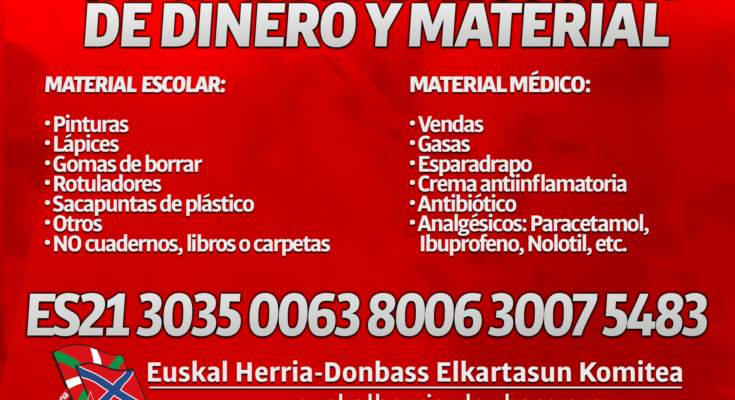 El internacionalismo ha sido siempre la principal herramienta de trabajo de Euskal-Donbass Elkartasun Komitea. Es por ello que, mediante este comunicado, queremos dar a conocer la nueva campaña de recogida de fondos económicos y material que pondremos en marcha con la colaboración de nuestros compañeros de la Caravana Antifascista. Llevaremos ayuda humanitaria a los niños que viven en zonas de guerra y a los que han sido acogidos en orfanatos y centros para niños con discapacidades, instituciones con las que mantenemos una estrecha relación y colaboración desde hace años, así como a diferentes hospitales e instituciones médicas. Con el dinero recaudado estos centros, además de comprar material escolar y pedagógico, podrán acondicionar las aulas y reconstruir aquellas instalaciones que han sido destruidas por las bombas ucranianas y podrán dispones de nuevo material médico en los hospitales.